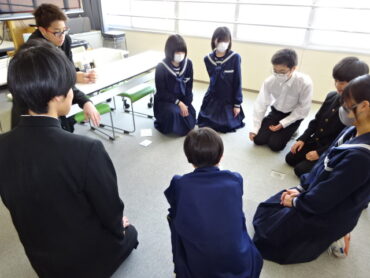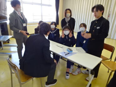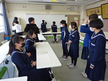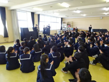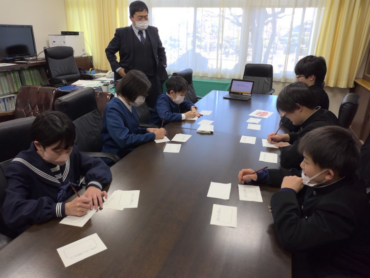 2026.3.9 NEW 1学年 2学年 3学年 4学年 5学年 6学年 7学年 8学年 9学年 全校生 卒業イベント 9年生の卒業を祝い、全校で「卒業イベント」を実施しました。後期棟校舎全体と武道館を使い各学年と9年生の先生、校長先生が準備したミッションを、9年生をリーダーとしたグループがクリアするゲームです。(1~5年生はクイズをつくりました)10グループに分かれた6年生から9年生の児童生徒たちは、工夫が凝らされたクイズやゲームに話し合ったり協力したりして挑戦していました。国吉の新たな取組がまた一つ生まれました。