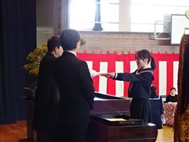 2026.3.12 9学年 全校生 第6回卒業証書授与式① 高岡市立国吉義務教育学校第6回卒業証書授与式を挙行しました。 様々な活動でリーダーシップを発揮してくれた16名の卒業生が巣立ちました。 前期課程の児童も精一杯お祝いし、体育館いっぱいに素敵な校歌の合唱が響き渡りました。 一人一人の前途が光り輝くことを祈りたいと思います。 みんな頑張れ!