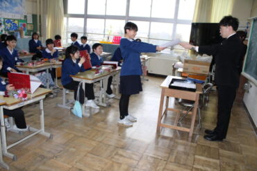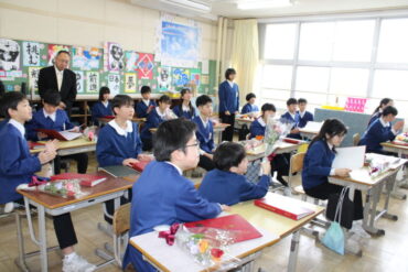 2026.3.13 NEW 6学年 第6回前期課程修了証書授与式③ 式が終わり、2年間をともに過ごした担任との学活です。4月からは思い出深い前期課程の校舎から離れます。 が、本校は義務教育学校ですので、6年生は来週から早速後期課程の授業の準備が始まります。気持ちも新たに頑張りましょう!