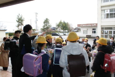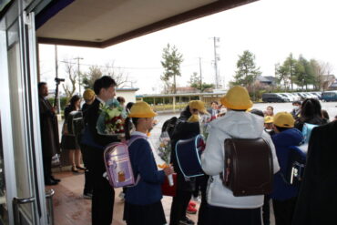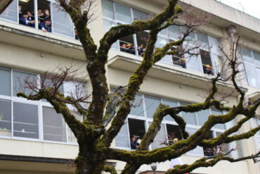 2026.3.13 NEW 1学年 2学年 3学年 4学年 5学年 6学年 前期課程修了証書授与式④ 学活を終えた後、6年間の感謝を込めて、校舎に「ありがとうございました」とお礼を言いました。 前期課程生が、各教室の窓から手を振り、最後まで6年生をお祝いしてくれました。